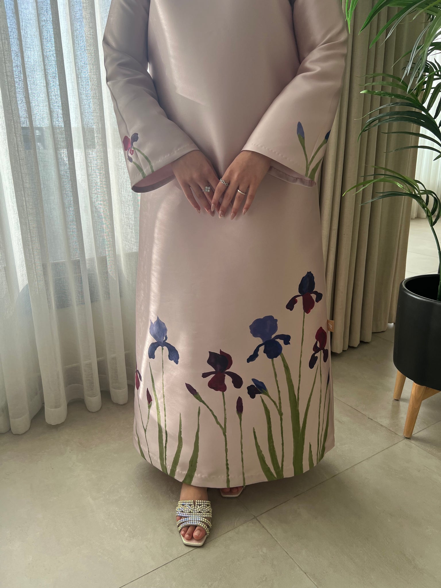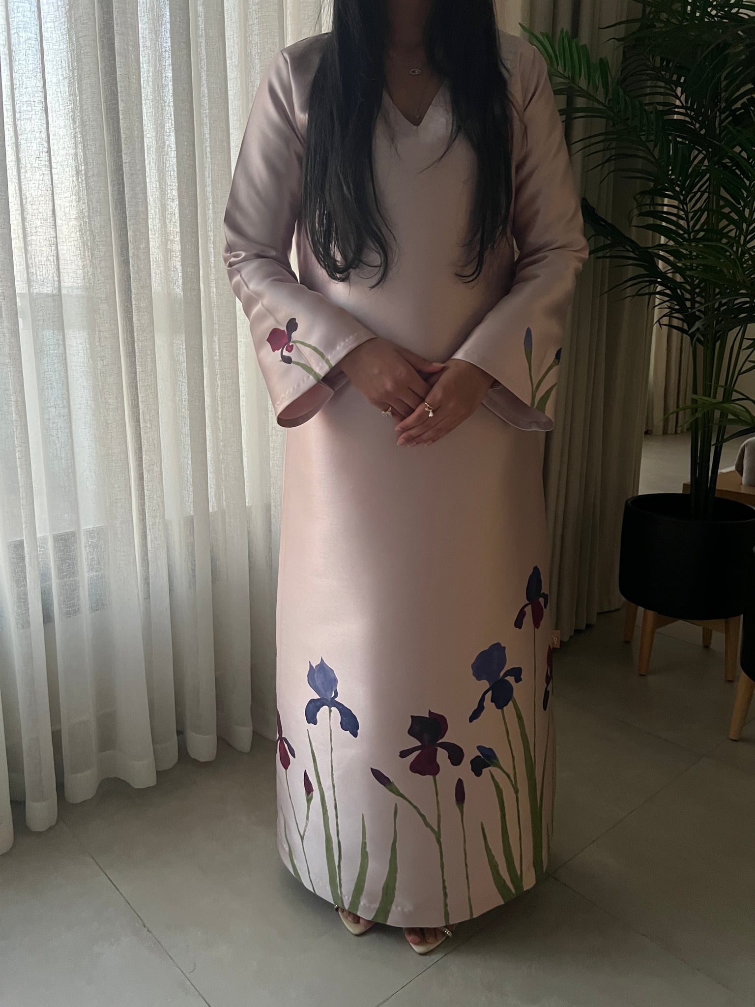 Graceful, timeless, and effortlessly chic—the Iris Kaftan is a celebration of nature’s beauty. Featuring a delicately hand-painted Iris flower, this piece captures the essence of spring in high quality fabric. The simple A-line cut ensures a flattering silhouette, offering both comfort and sophistication. Whether styled for a breezy daytime look or an elegant evening out, this kaftan is a true embodiment of wearable art.